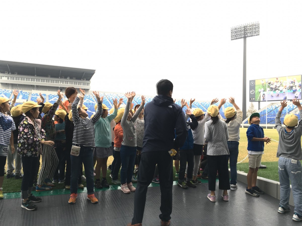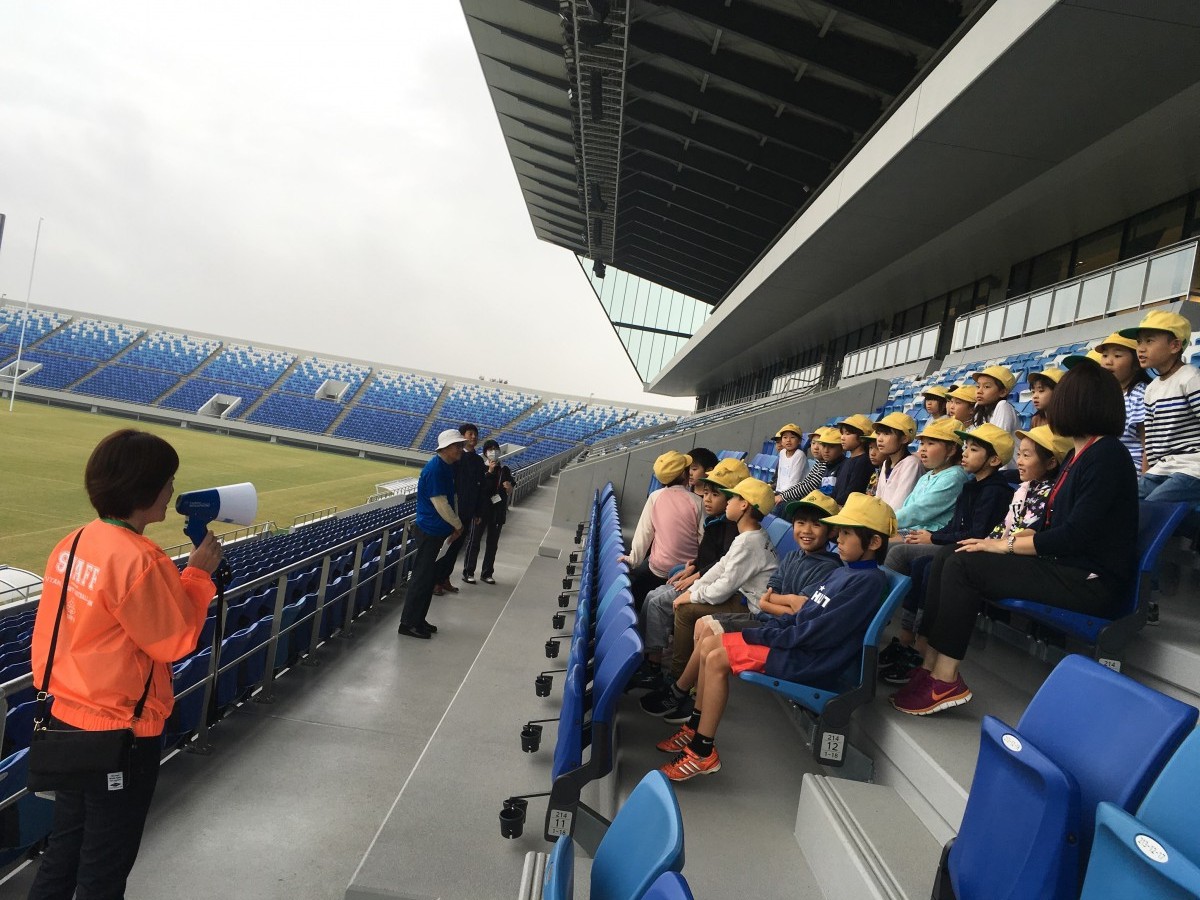 11月6日、熊谷西小学校3年生、3クラス約100人の生徒と先生が社会科見学で熊谷ラグビー場を訪れました。